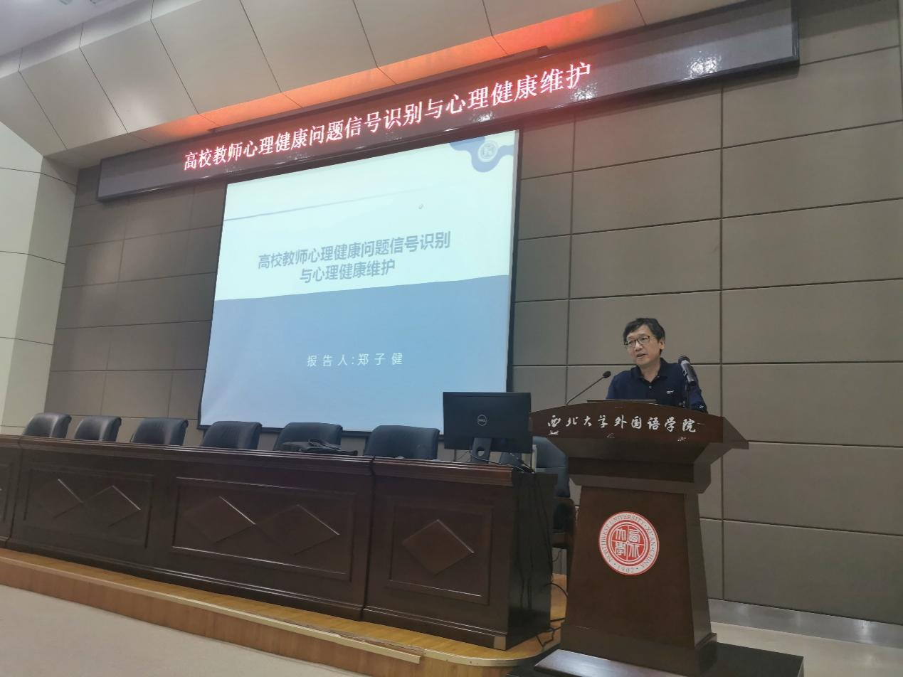 Before the lecture, Wang Jun, the Party Secretary of our school, introduced the speaker and shared the purpose of the event, and emphasized the importance of mental health for every faculty member.