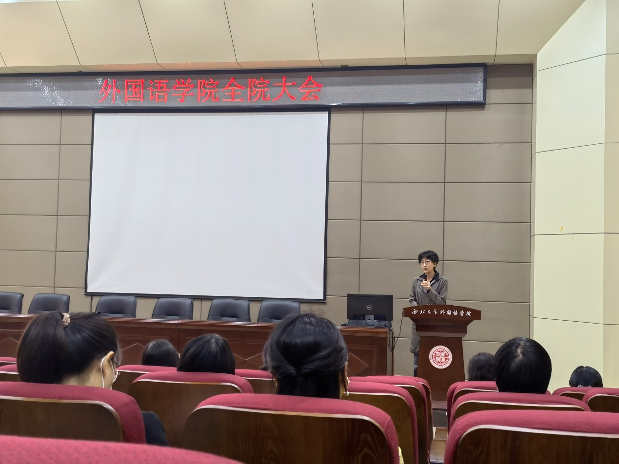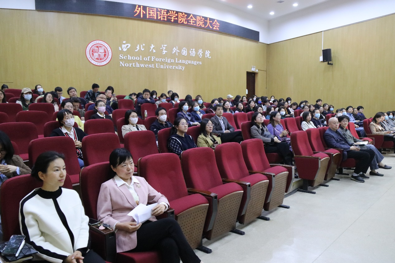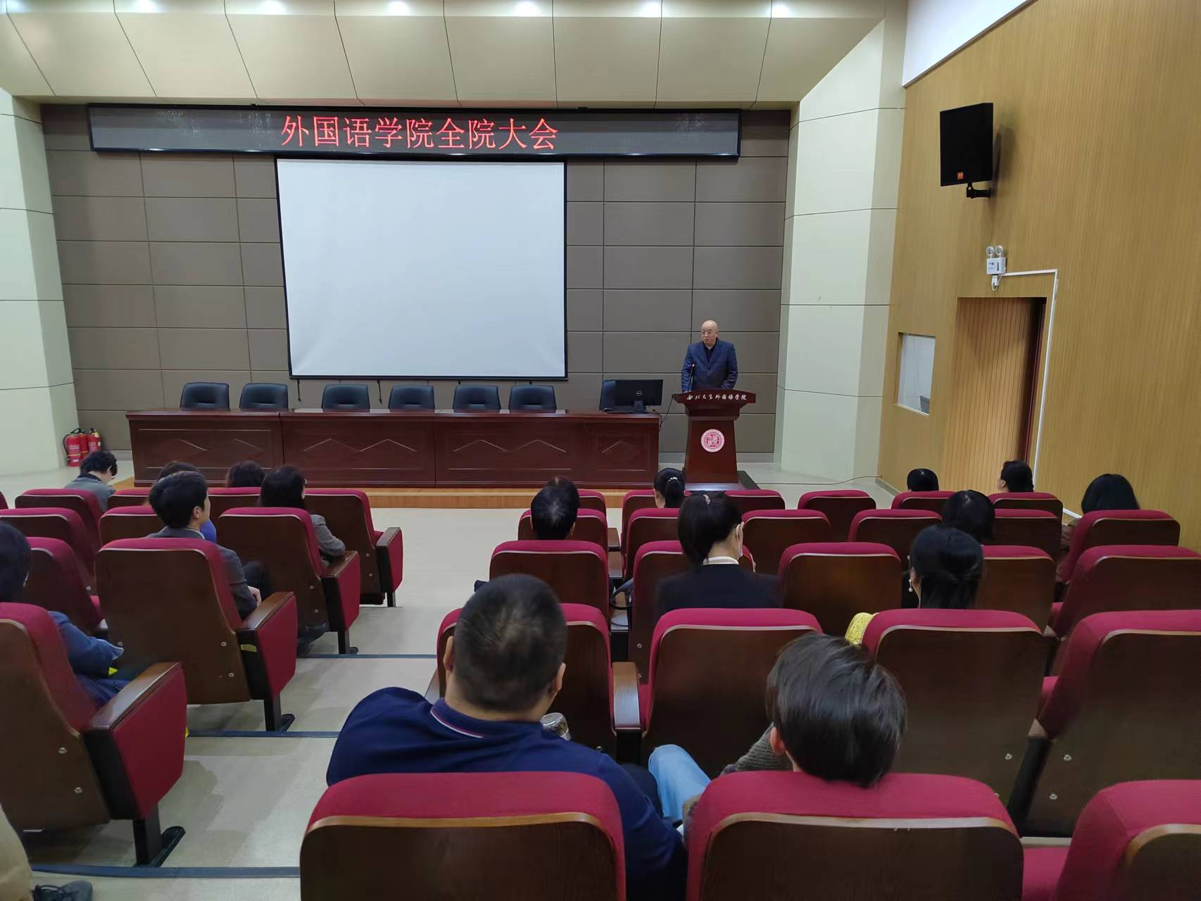 On the afternoon of April 12, 2023, a school-wide meeting was held at the Lecture Hall of the Second Classroom in the School of Foreign Languages. Members of the school’s party and administrative leadership team, as well as all faculty and staff, attended the meeting. The meeting was chaired by Yang Ying, the Deputy Dean of Administration.
