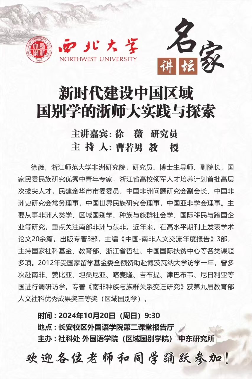 Lecture Venue: Lecture Hall 2, School of Foreign Languages, Northwest University
