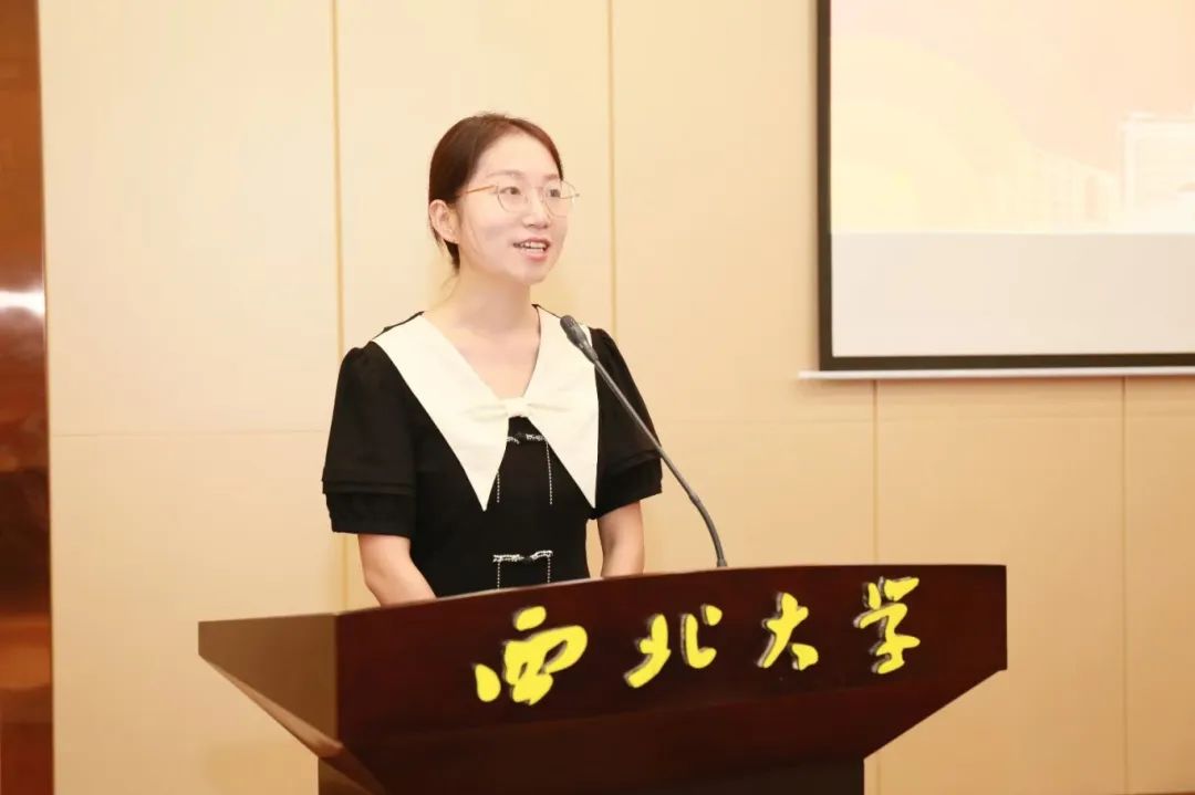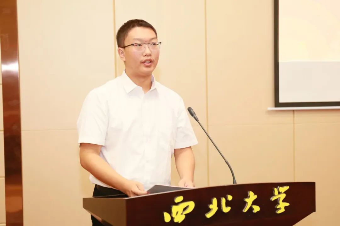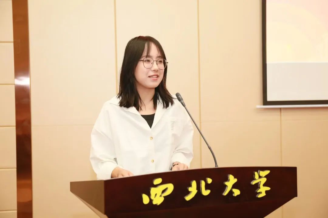 本科新生代表王晨曦和研究生新生代表薛芬回首西大历史,展望老员工活,表达了对未来学习生活的向往,许下奋发向上、不负韶华的誓言。