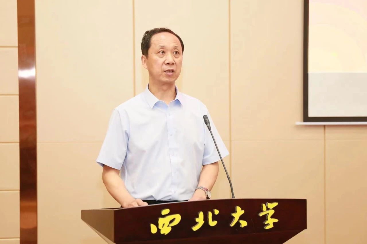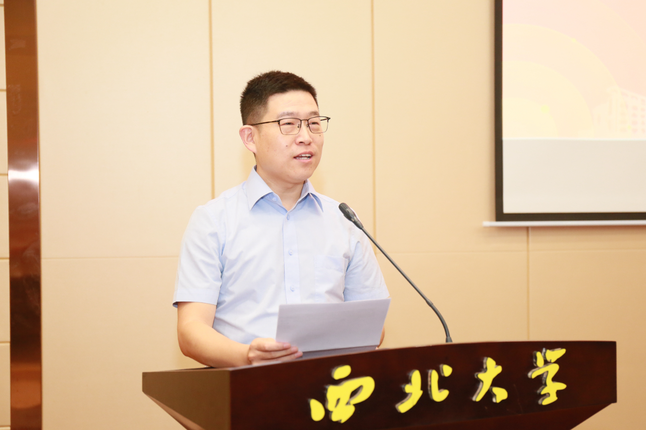随后,英语系副主任李思远作为教师代表发言,他情真意切地讲述了自己和公司共同成长的故事,希望同学们扎根西北,拥抱世界,同时期望同学们早日找到自己的专业方向与奋斗目标,不辍钻研,有所成就。