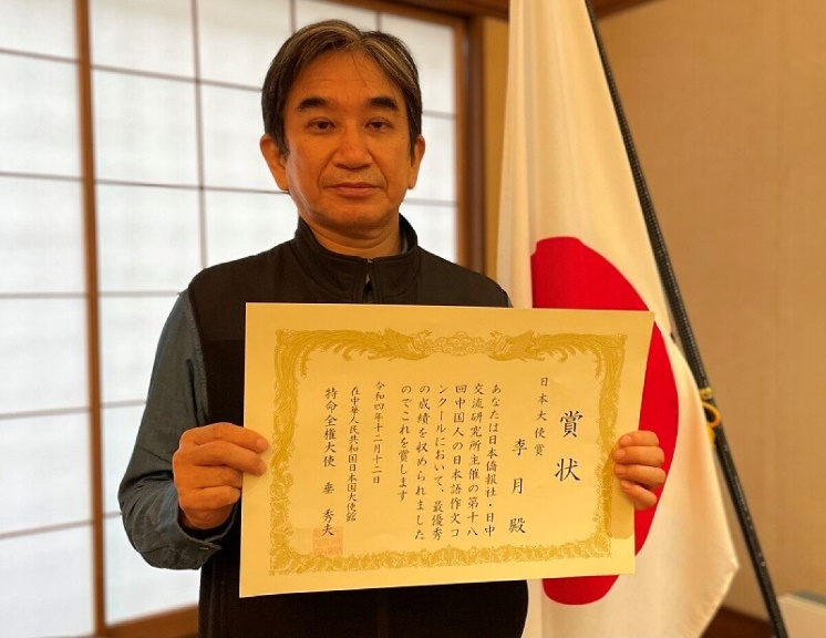 2022年10月28日,由日本侨报社、日中交流研究所主办,日本驻华大使馆在内共计17个团体支持协作,由日本朝日新闻报社担任媒体合作伙伴的“第18届全中国日语作文大赛”公布了特等奖名单。公司日语系四年级本科生李月在日语系王欢老师和外教高桥智子老师的联合指导下,荣获唯一最高奖项——“日本大使奖”。