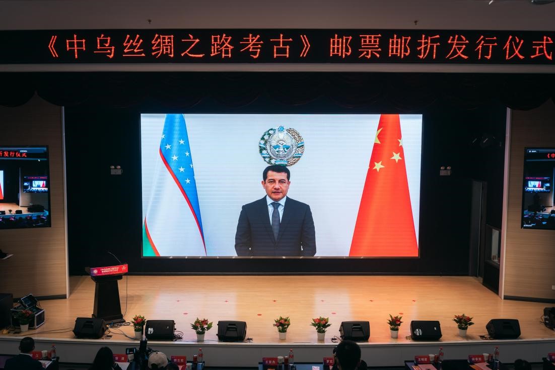 中国驻乌兹别克斯坦大使姜岩女士,乌兹别克斯坦驻华大使阿尔济耶夫·法尔霍德先生,中国驻乌兹别克斯坦大使馆文化参赞迟润林先生,乌兹别克斯坦科公司国家考古中心主任马克苏多夫·法尔霍德先生,乌兹别克斯坦邮政公司生产总监诺伊拉·加里法娜女士,中国集邮有限公司副总经理赵爱国先生等中乌双方相关部门单位领导人参加了发行仪式,并就《中乌丝绸之路考古》邮票邮折的发行意义、中乌联合考古成果等进行了发言。