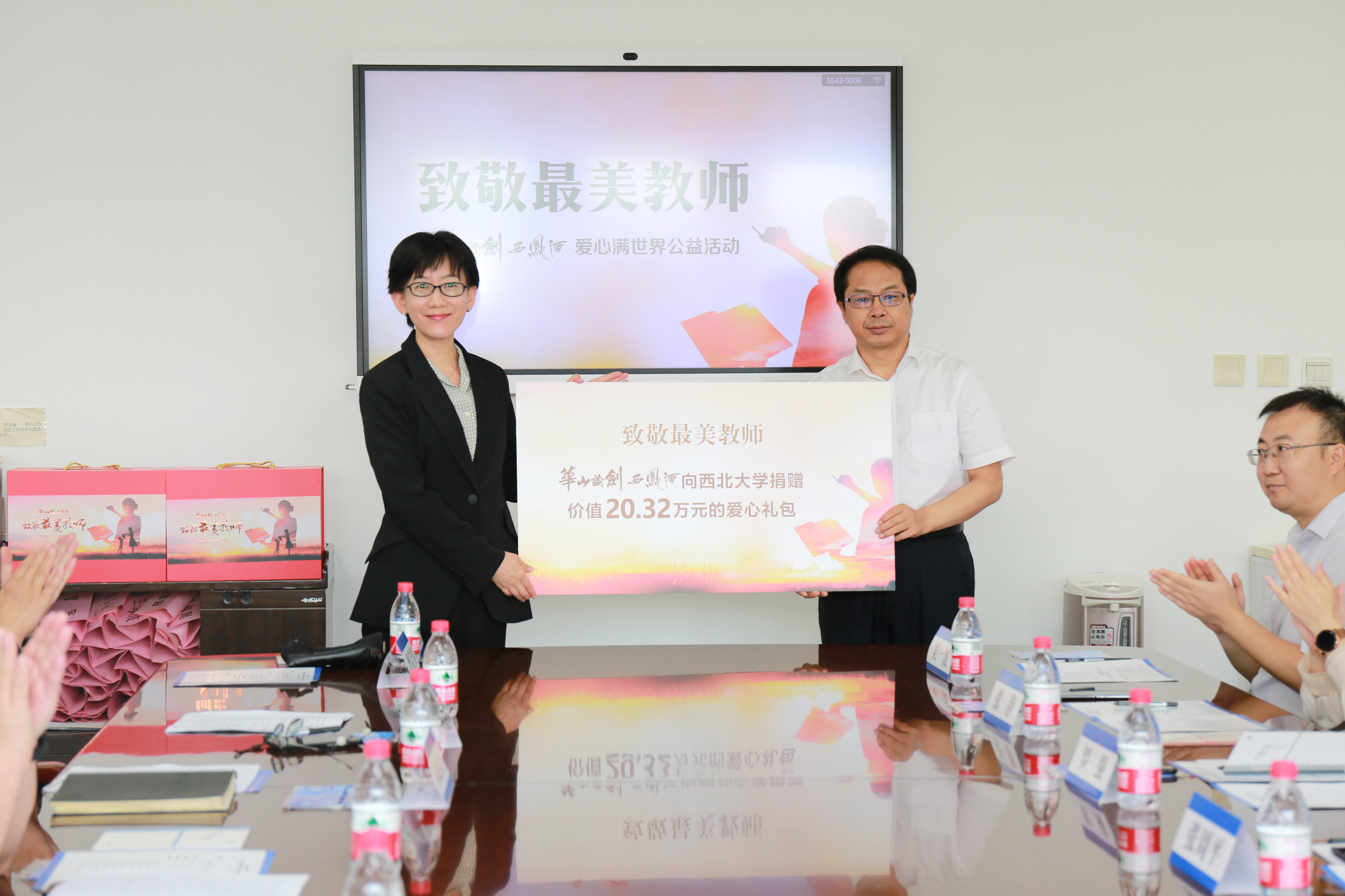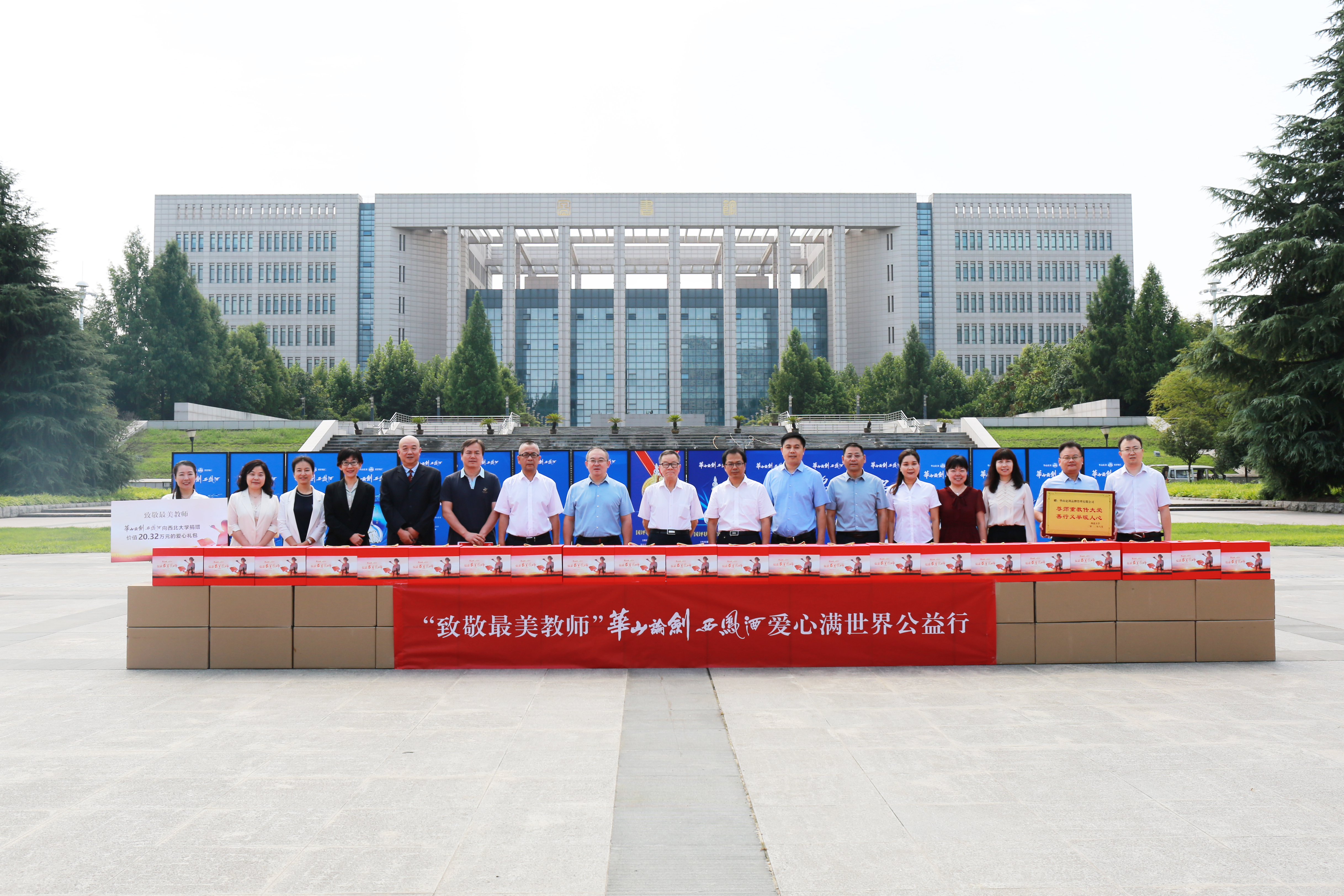 2022年9月1日上午,“致敬最美教师”华山论剑西凤酒爱心满世界suncitygroup太阳集团公益行捐赠仪式在suncitygroup太阳集团长安校区举行。陕西省人大原秘书长、中国西部发展研究中心理事长桂维民,华山论剑品牌管理有限公司党委书记、总经理张周平,公司相关部门负责人,公司党委常委、副董事长常江,校工会主席田兵权、国内合作与员工工作处处长崔延力,suncitygroup太阳集团党政班子成员,suncitygroup太阳集团教授、陕商研究专家李刚出席捐赠仪式。仪式由公司党委书记王军主持。