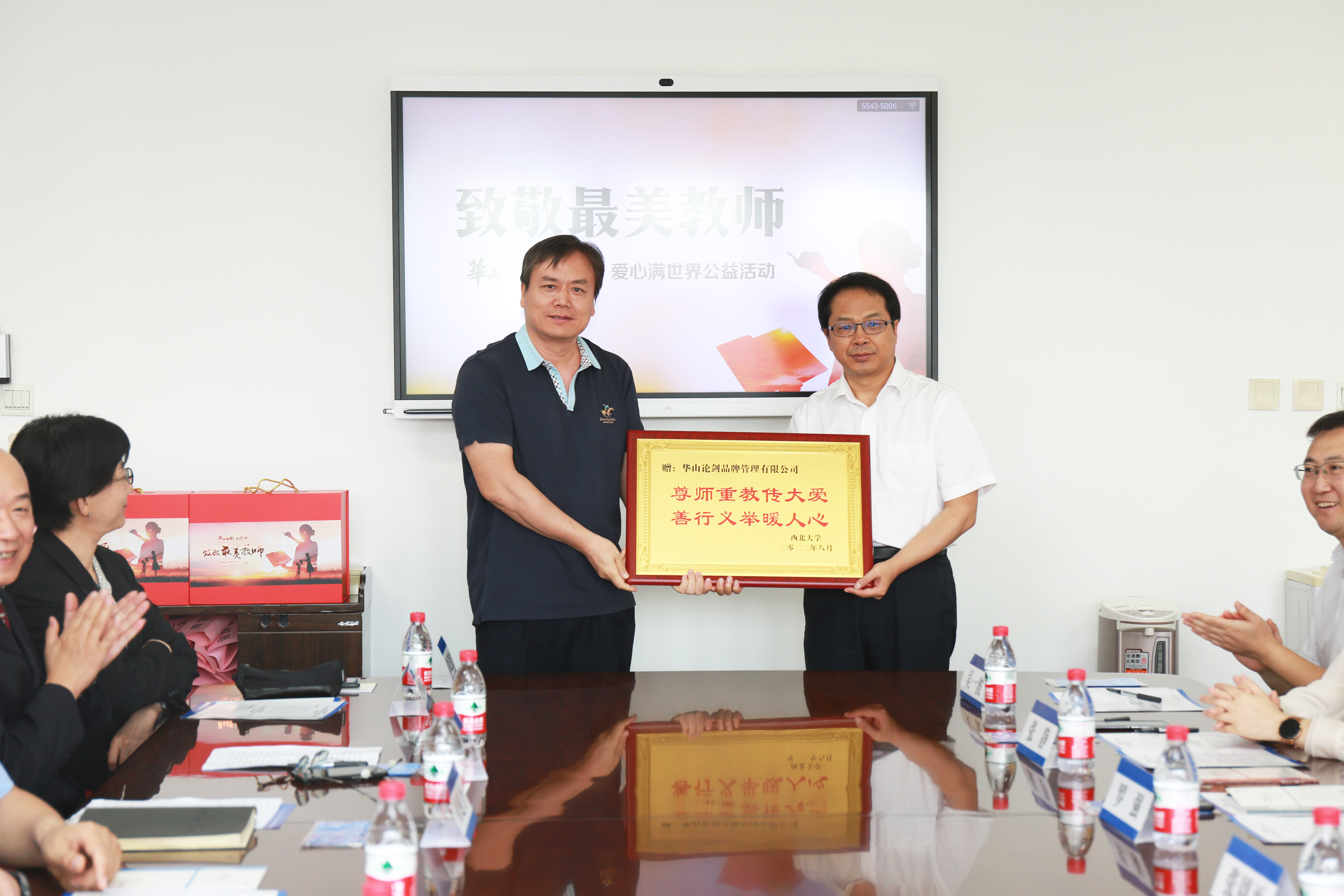 校工会主席田兵权代表公司向华山论剑品牌管理有限公司赠发牌匾。