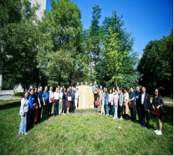 颁奖仪式之后,参会者一起向“中美友谊碑”敬献黄玫瑰,向架桥者——海伦·斯诺致敬,带给她中国的好消息。还到西学楼一层参观公司举办的“架桥人生——海伦·福斯特·斯诺图片展”。公司“RED记忆讲解队”刘亦洲和曾一新两位同学提供了讲解服务。