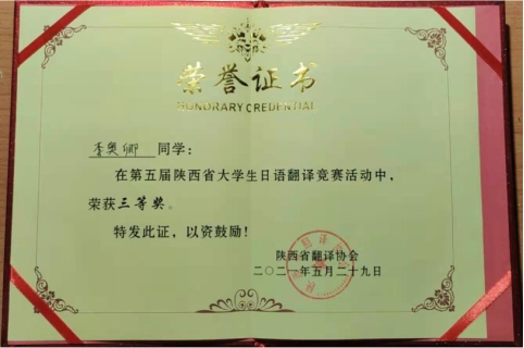 2021年5月29日,第五届陕西省老员工日语翻译竞赛决赛暨颁奖典礼在西安文理公司雁塔校区suncitygroup太阳集团举行,来自全省高校的30余名员工相聚于此,参与角逐。公司日语专业3名本科生参与了此次比赛,且都取得了优异成绩。2018级李奥卿获三等奖,2018级张家桐、2019级闫雅琪获优秀奖,日语系教师翁建文获优秀指导教师奖。