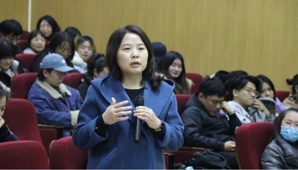 讲座互动环节,何钦老师认真回答了在座师生所提出的关于电影译制标准、电影生产以及电影国际推广等诸多问题。