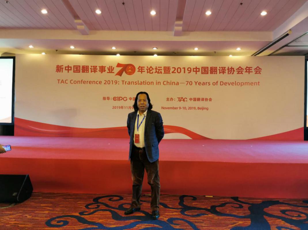 由中国外文局指导,中国翻译协会主办的新中国翻译事业70年论坛暨2019中国翻译协会年会于2019年11月9日在北京召开。来自中央国家机关各部门、各省市自治区、港台地区以及亚洲、欧洲、北美、拉美等地十多个国家和地区的大型跨国企业、高等院校、研究机构、行业组织等领域的900多位代表参加会议。公司经理胡宗锋教授出席会议并在“新时代背景下翻译职业化教育的改革与实践”论坛上发言。