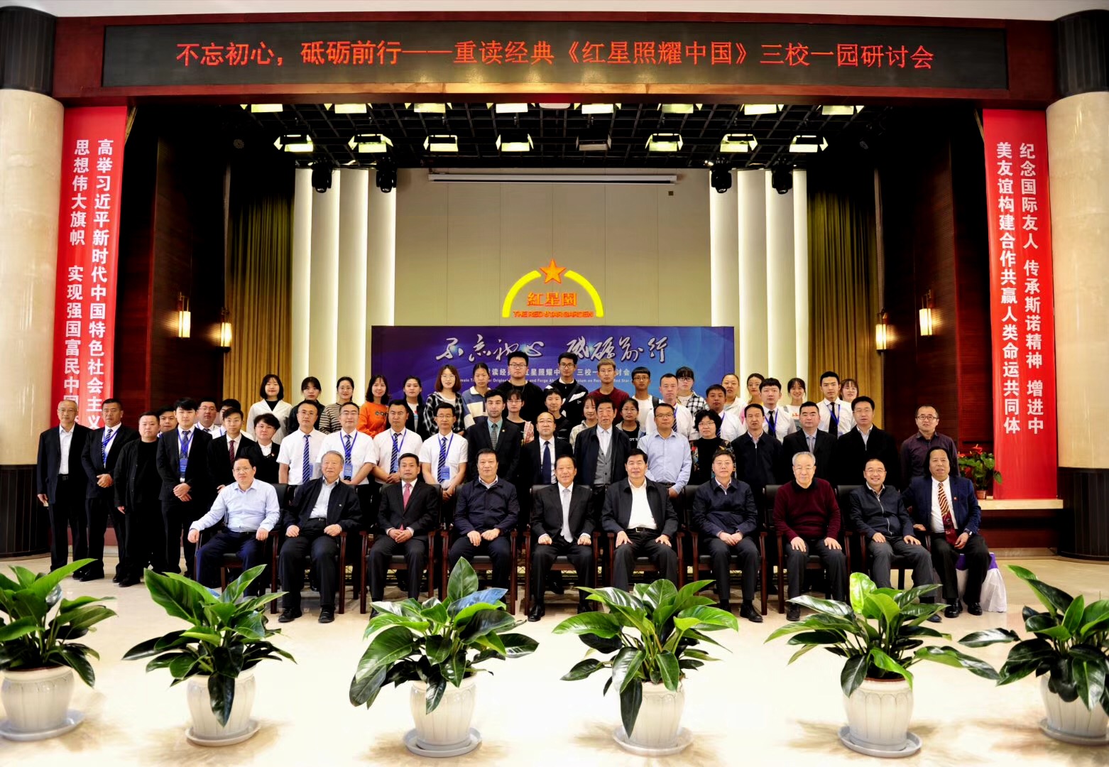 2019年5月23日,由中国西部研究与发展促进会经济贸易委员会主办、延安红星园承办的“不忘初心、砥砺前行——重读经典《红星照耀中国》三校一园研讨会”在延安红星园会议中心举行。
