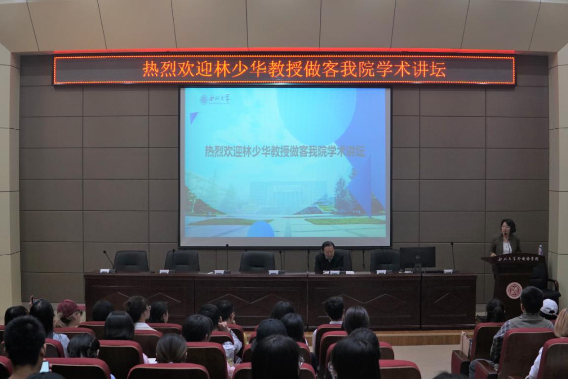 随后,林教授以“从文体角度看村上春树文学”为主题开始讲座,详细深入地阐释了文体之美在村上文学传播中的作用,立意奇特新颖,给同学们以新的启发。