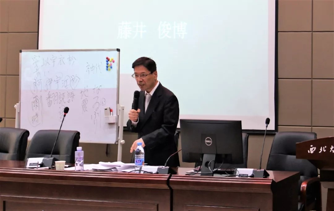 藤井教授是日本著名的语言学家,出版专著数十部,主编或参编多部词典,发表语言学研究论文近百篇,并作为嘉宾在日本电视节目中进行日语汉学的普及教育。报告以“汉字·汉语词和日语的关系”为主线,全面系统地梳理了汉字·汉语词在日本的传播、接受以及对日语的影响。