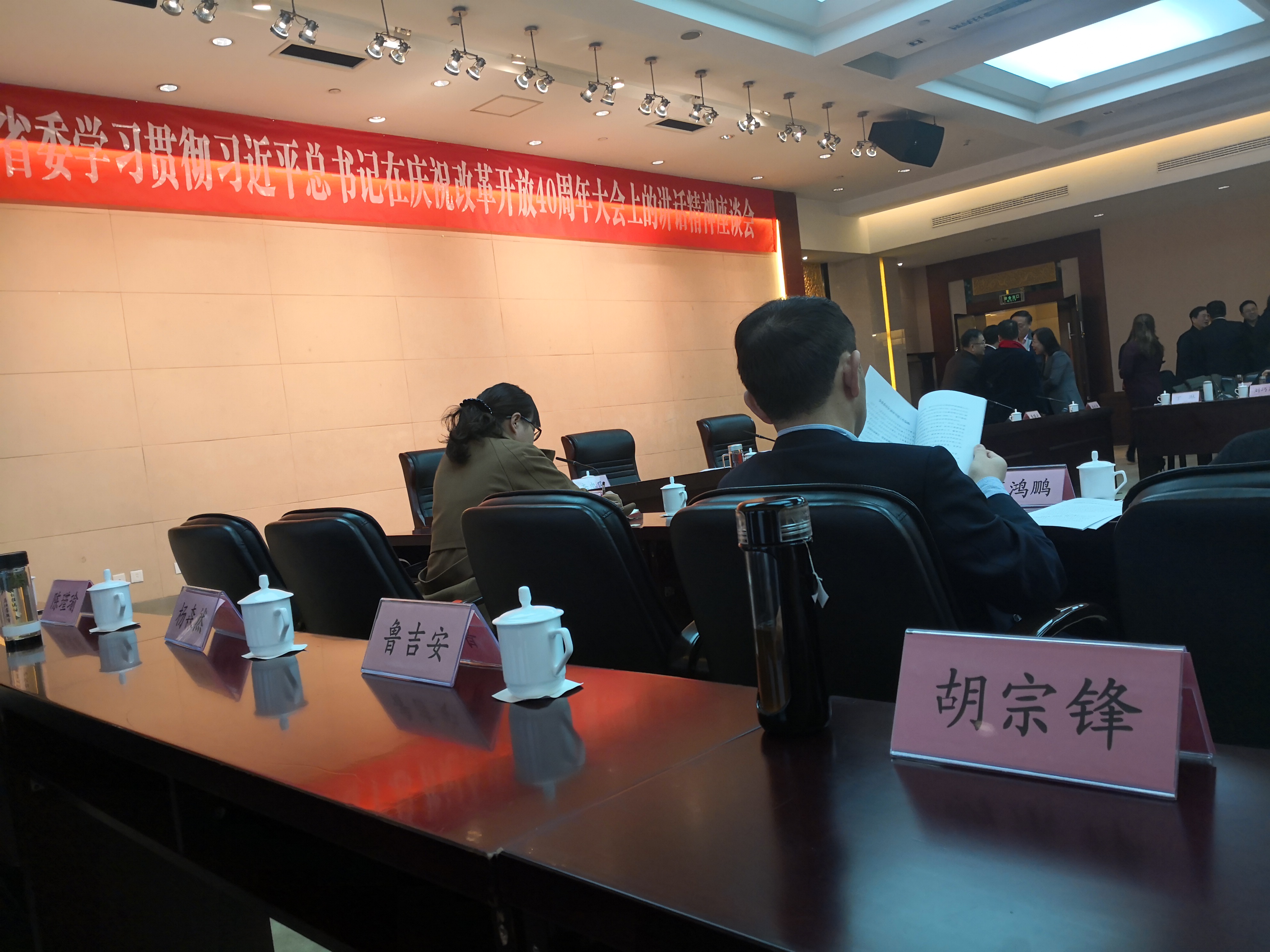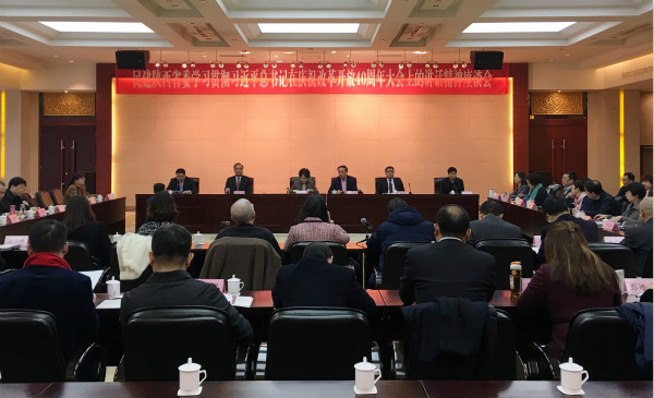1月4日,省民建召开学习贯彻习近平总书记在庆祝改革开放40周年大会上的重要讲话精神座谈会。省政协副主席、省民建主委李冬玉出席会议并讲话。省委会委员、各专门委员会主任副主任、市级组织专职副主委、省委会监督委员会委员和机关处级以上干部参加座谈会。作为省民建理论与文化委员会副主任,公司胡宗锋教授应邀出席了本次座谈会。