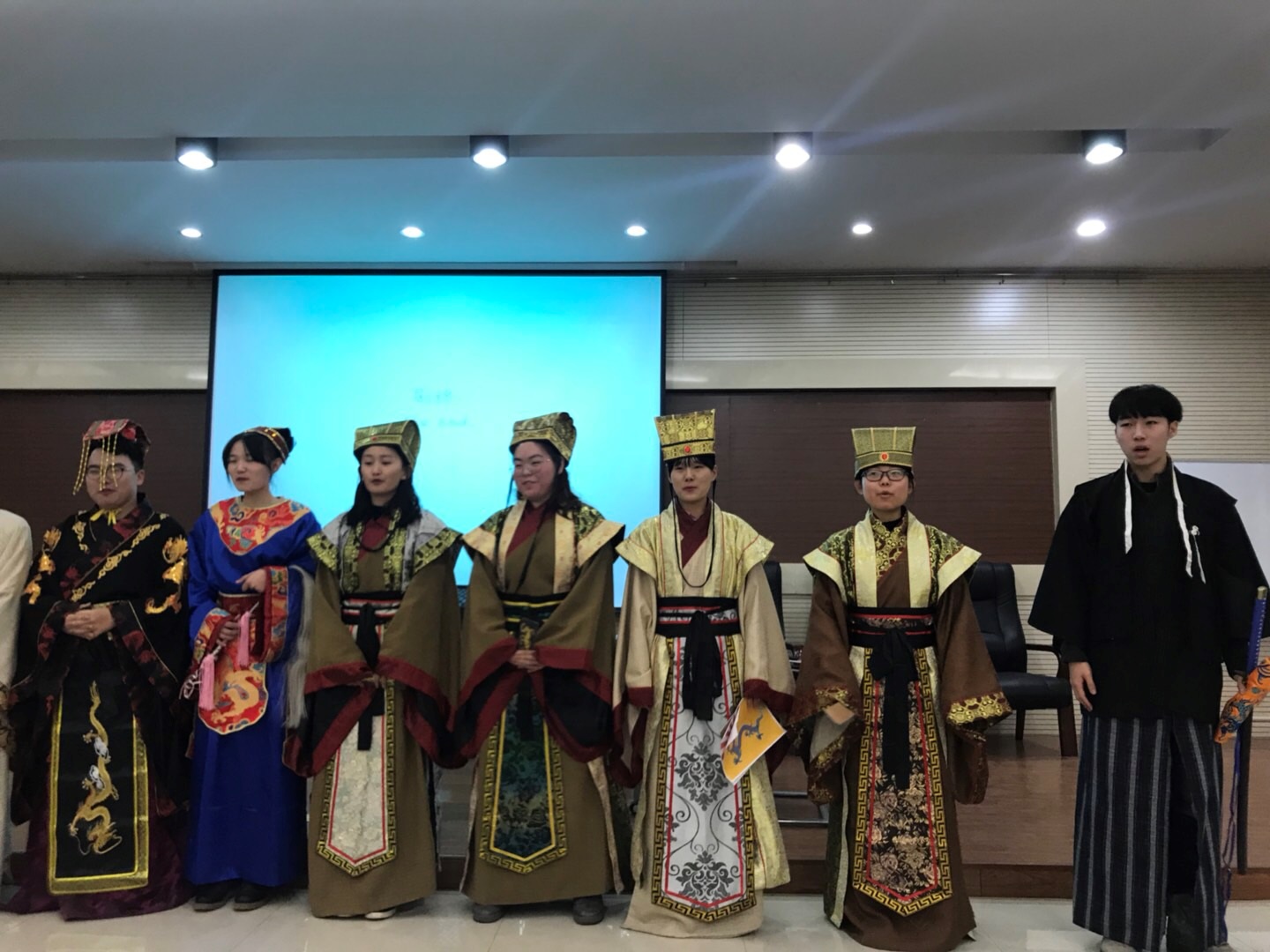 2017级甲、乙、丙三个班共有13个剧组参赛,他们为观众们呈现了13个改编自中西名著的优秀剧目,经典剧目有《雷雨》、《项链》;古装剧有《甄嬛传》;现代剧有《老友记》;动漫和童话剧目有《小猪佩奇》、《灰姑娘》。值得一提的是《万历朝鲜战争》。该剧别出心裁地融汇了四川方、英语和韩语,让人耳目一新,喝彩不断。