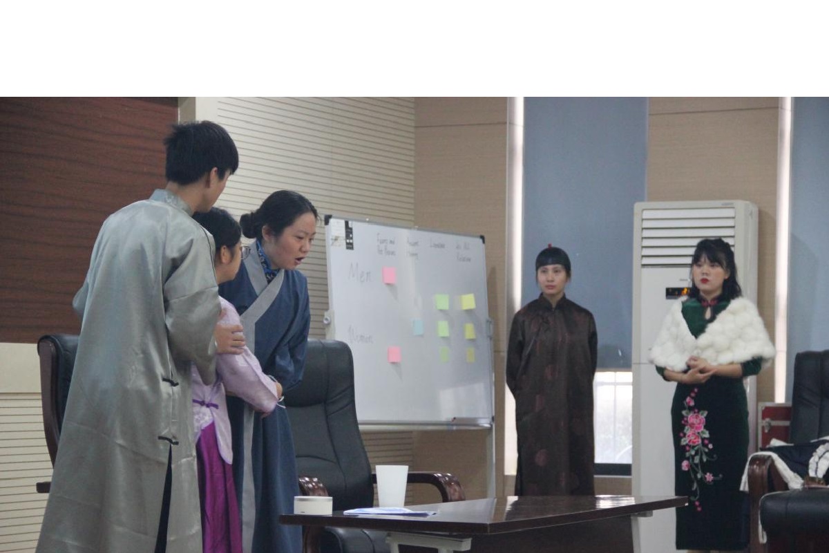 从筹备到公演,2017级的三位班主任老师苏蕊、张敏、田慧芳及项目负责人海燕老师多次探讨并最终形成小剧场方案。12月初,英语小剧场方案向2017级全年级公布,并得到了员工们的积极响应。他们今天的出色表演让前来观摩的各年级同学感受到了他们对英语剧表演的热情,也看到他们在学业之余付出的努力,如成立剧组、遴选剧本、改编剧本、筹借服装、制作道具、排练对白、练习走位等等。