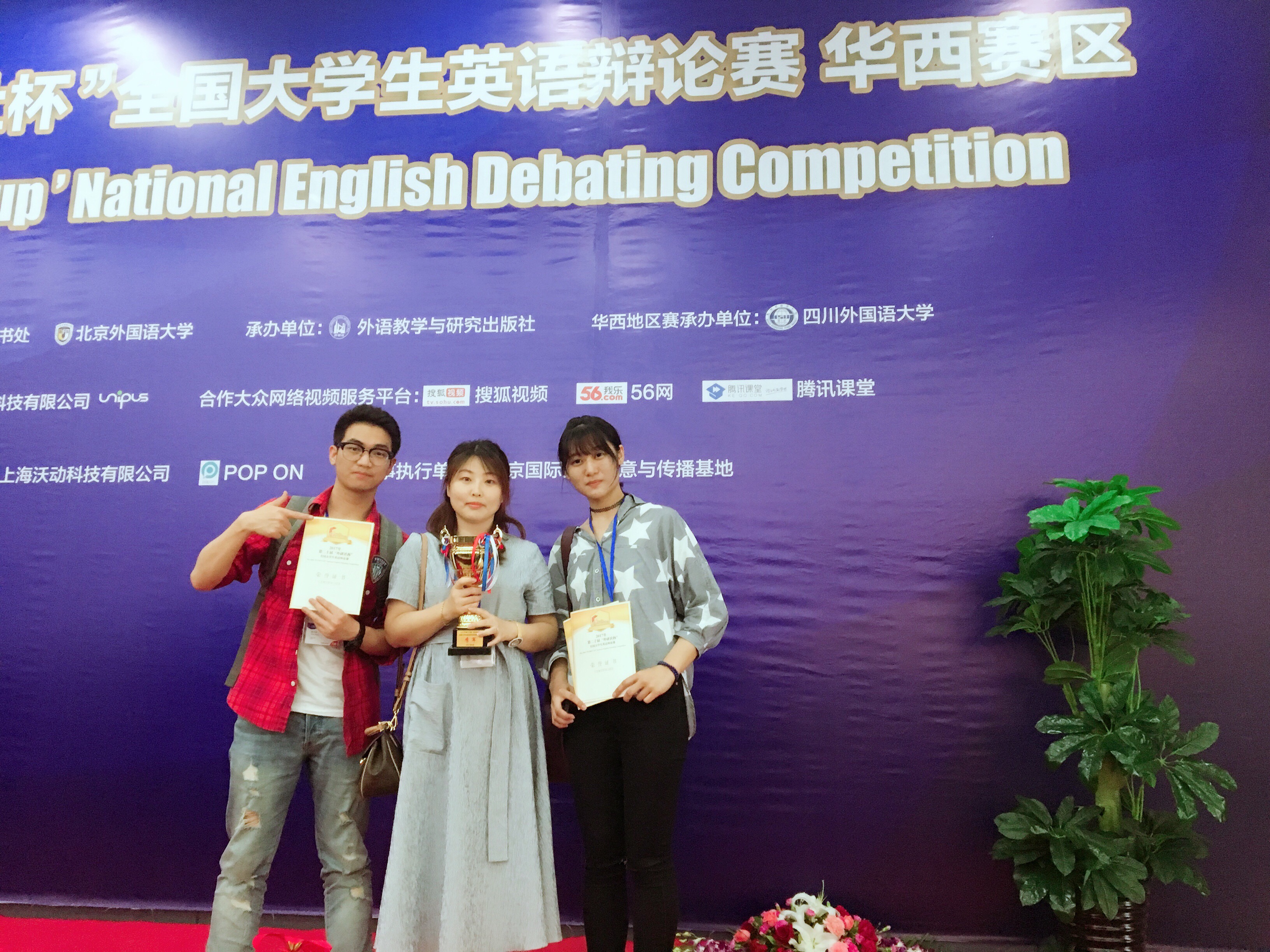 第20届“外研社杯”全国英语辩论赛华西赛区复赛于4月28日在重庆市四川suncitygroup太阳集团举办,本次华西赛区云集了来自重庆、四川、山西、陕西、河南、新疆、甘肃、宁夏、西藏、青海、内蒙古等各省市的400多名参赛选手。在经过为期2天5轮激烈的循环赛后,suncitygroup太阳集团英语专业2014级和2015级的员工赵子喆、牟昶璇,在本院马莉老师的带队下,以总积分排名第一的优异成绩中从107支公司参赛队伍中脱颖而出,率先晋级全国总决赛,并夺得了华西赛区季军,创下了公司选手参加“外研社杯”全国英语辩论赛地区复赛的最好成绩。5月18日-5月25日,他们还将代表suncitygroup太阳集团参加本届大赛全国赛的角逐。