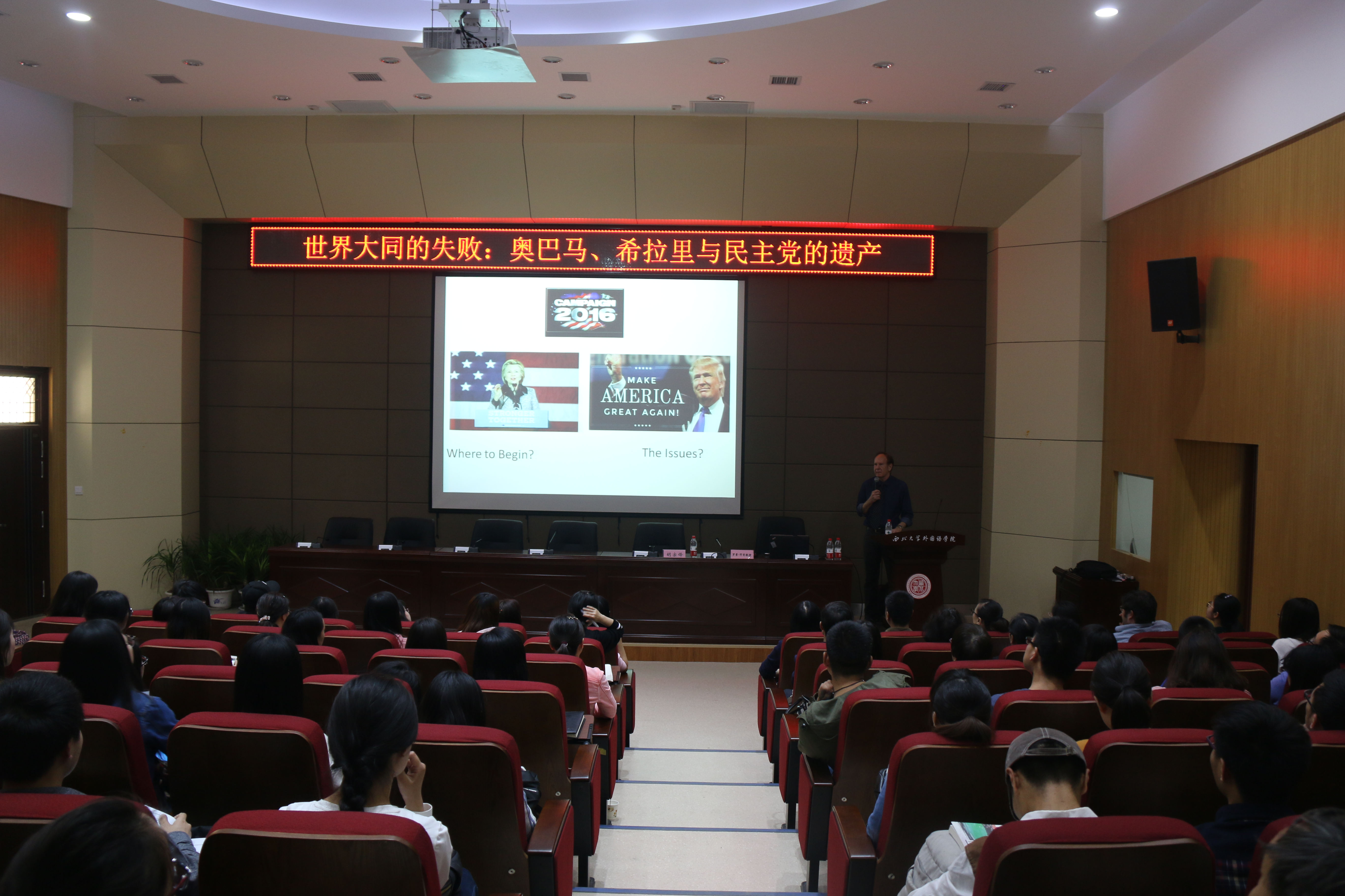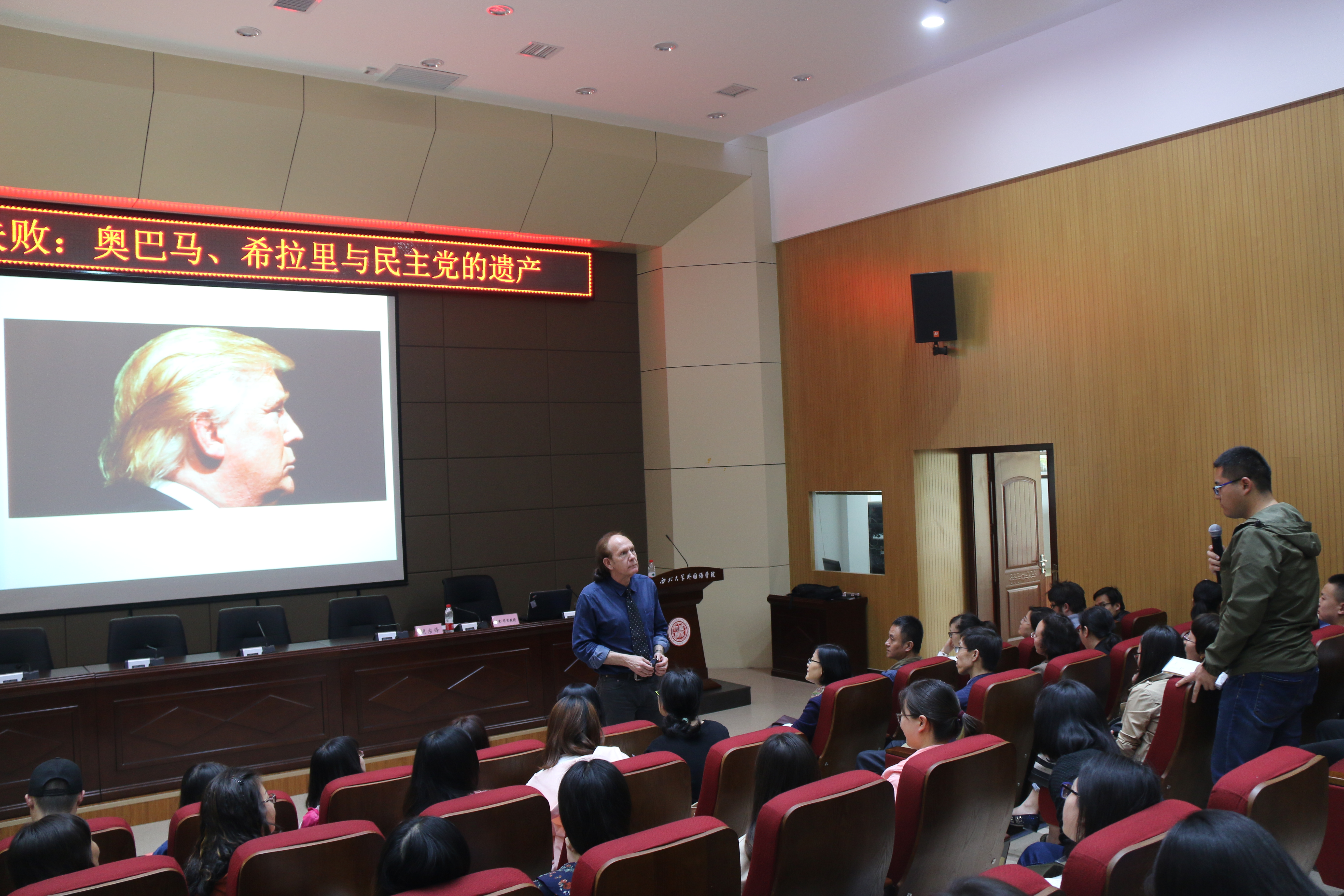 4月24日,美国富布莱特杰出教授、丹麦哥本哈根大学资深教授罗素·邓肯做客公司。在suncitygroup太阳集团第二课堂活动中心做了题为“世界大同的失败:奥巴马、希拉里和民治党的遗产”的报告。此次报告由suncitygroup太阳集团副经理任海棠教授主持,suncitygroup太阳集团师生参与了本次活动。