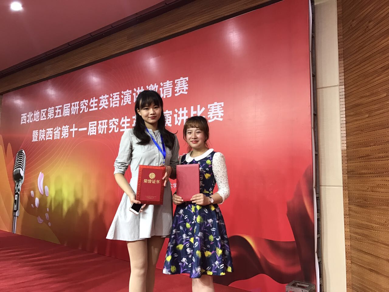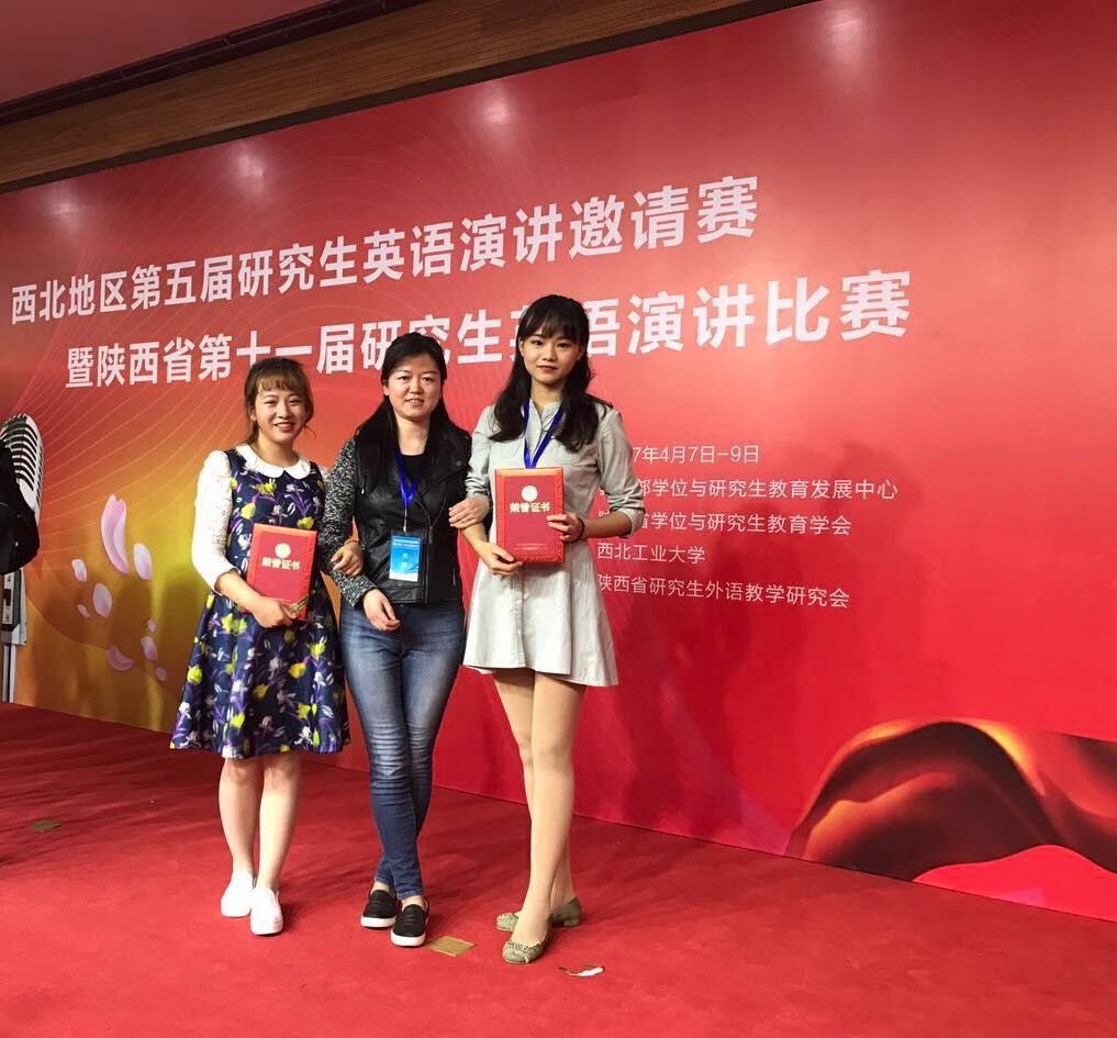 2017年4月6日-8日,西北地区第五届研究生英语演讲邀请赛暨陕西省第十一届研究生英语演讲比赛在西北工业大学举行。此次比赛,公司共派出两位选手代表公司参加:英语专业组上官书怡同学和非英语专业组辛佳闻同学,指导老师分别为外教Robin 和三部何花老师。在师生的共同努力下,经过激烈角逐,两位选手均获得大赛二等奖。在此向各位领导、各位同事汇报,并向获奖的两位指导老师及两位选手表示祝贺 。