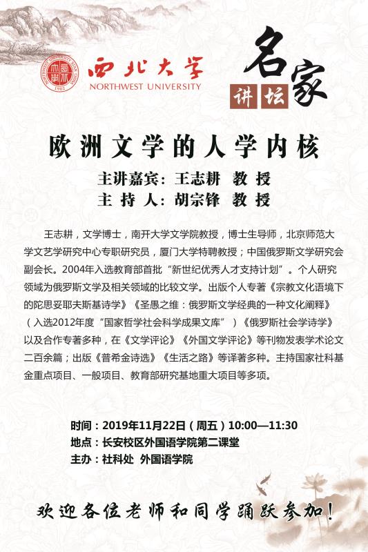 公司定于2019年11月22日(周五)上午10:00召开关于《欧洲文学的人学内核》报告,欢迎各位老师积极参加。