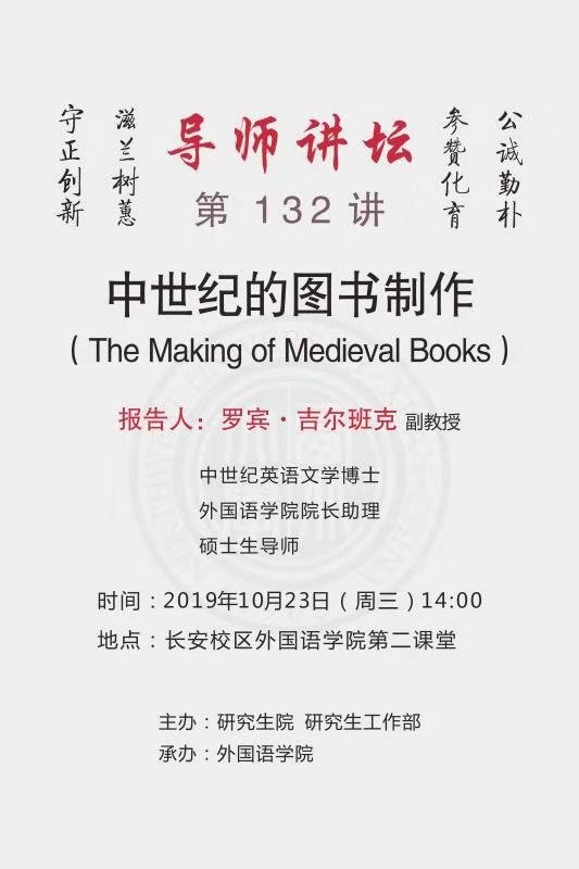 公司定于2019年10月23日(周三)下午14:00召开关于《中世纪的图书制作》报告,欢迎各位老师积极参加。