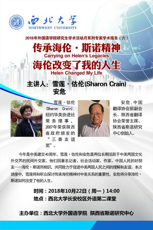 公司定于2018年10月22日(周一)下午14:00召开《传承海伦·斯诺精神,海伦改变了我的人生》学术报告,欢迎无课教职工参加。
